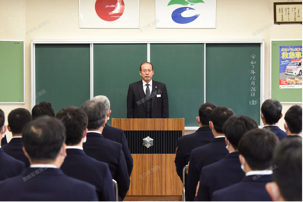 12月26日(金曜日)、さつま町消防署で令和7年の仕事納め式を行いました。