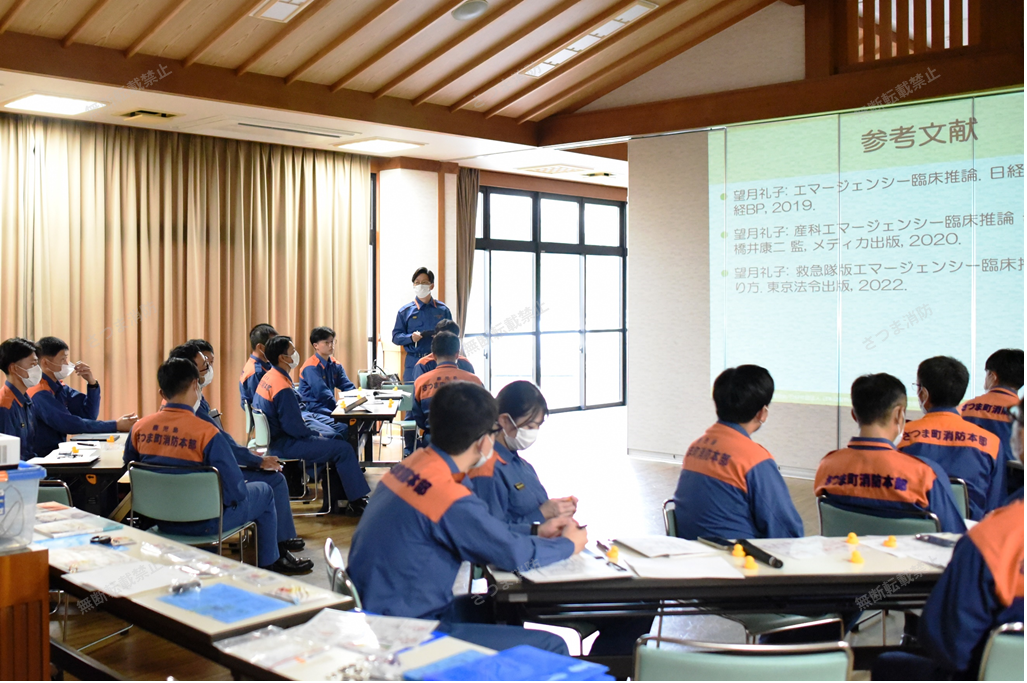 講師に、鹿児島大学救急・集中治療医学分野非常勤講師 救急科専門医の望月礼子医師(以後、望月講師)を招き、「救急隊版エマージェンシー臨床推論・救急脳の作り方~産科版」の研修を実施しました。