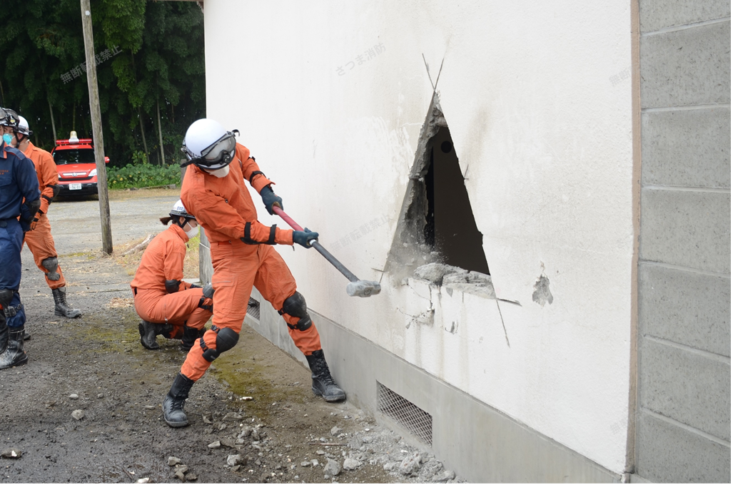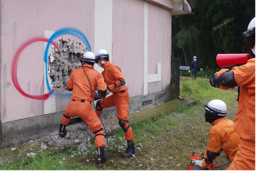 ※ブリーチングとは、倒壊した建物内に閉じ込められた要救助者を捜索・救出をするために、鉄筋コンクリートの壁や床に穴を開けて進入路を確保する破砕技術で、倒壊建物の救助活動においてブリーチング技術は重要な役割を果たします。