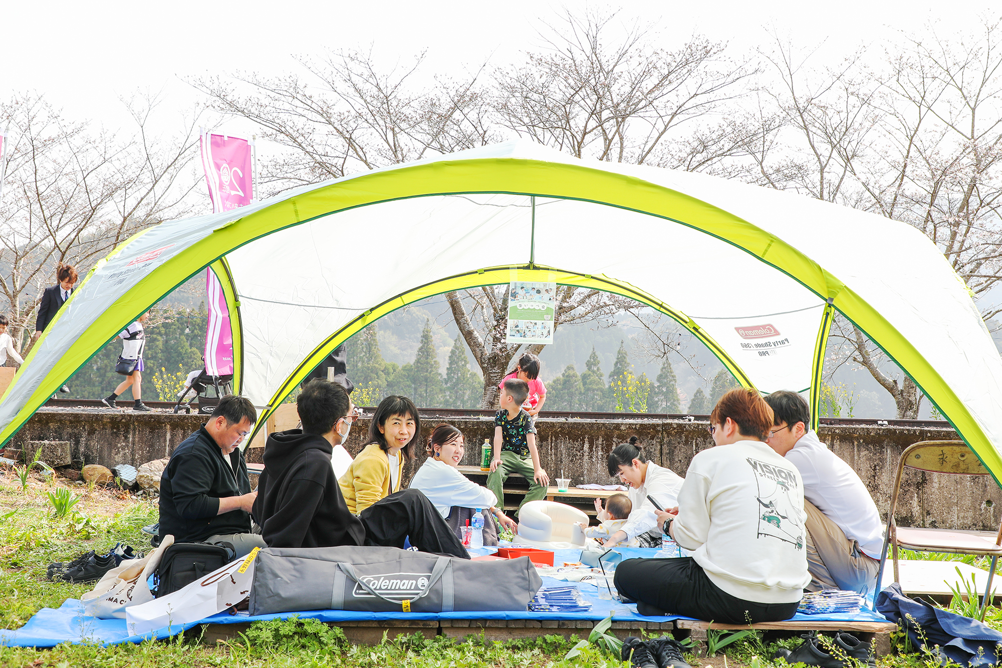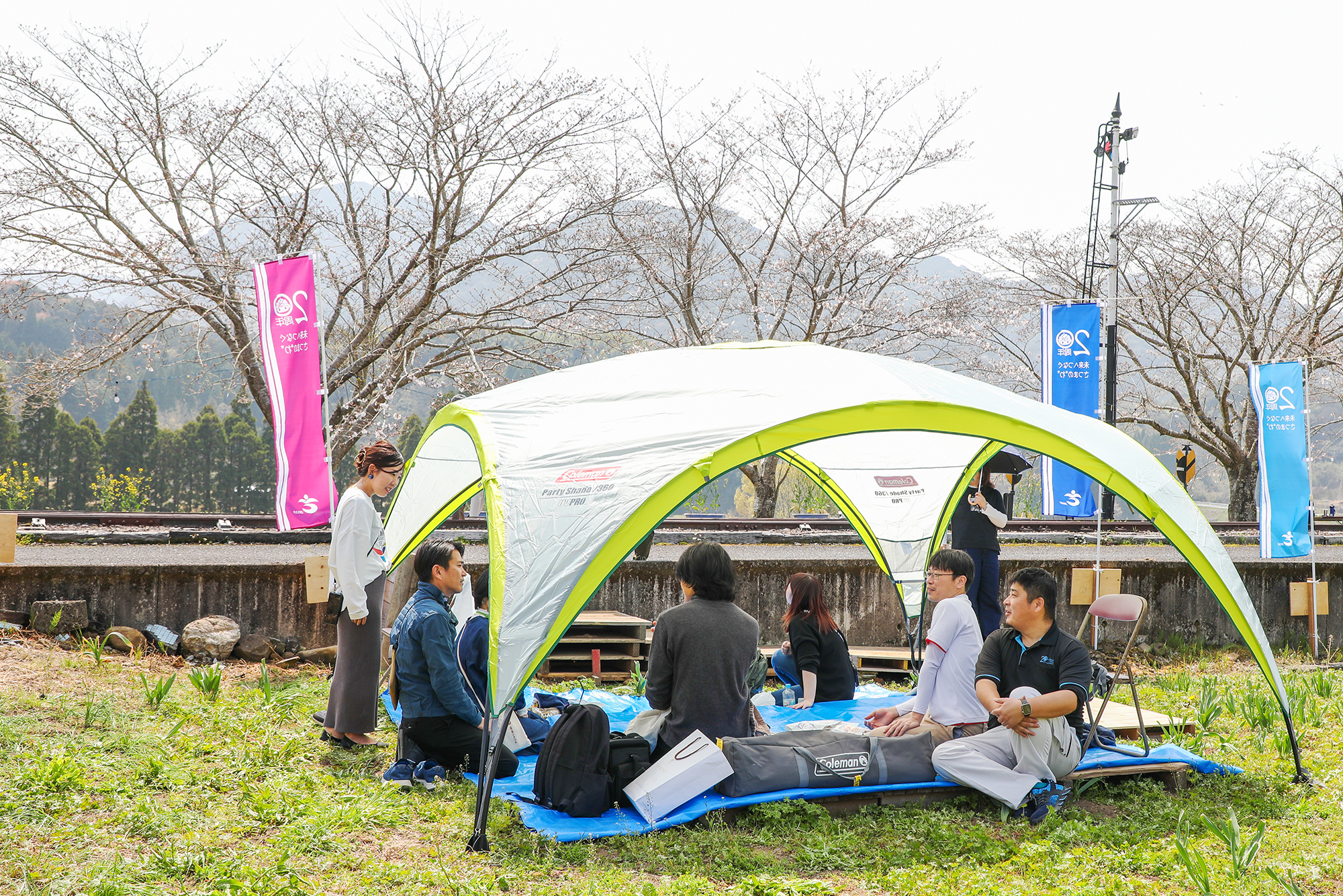そして第3回目は永野さくら祭りの会場でテントを張ってお花見をしながら約30名の参加者と交流をしました。移住して1週間以内の方、移住5年目の方、移住を検討している方と「おすすめの飲食店」や「移住した私の決め手」等の話題で終了予定時間が1時間以上延びるほど盛り上がりました。
